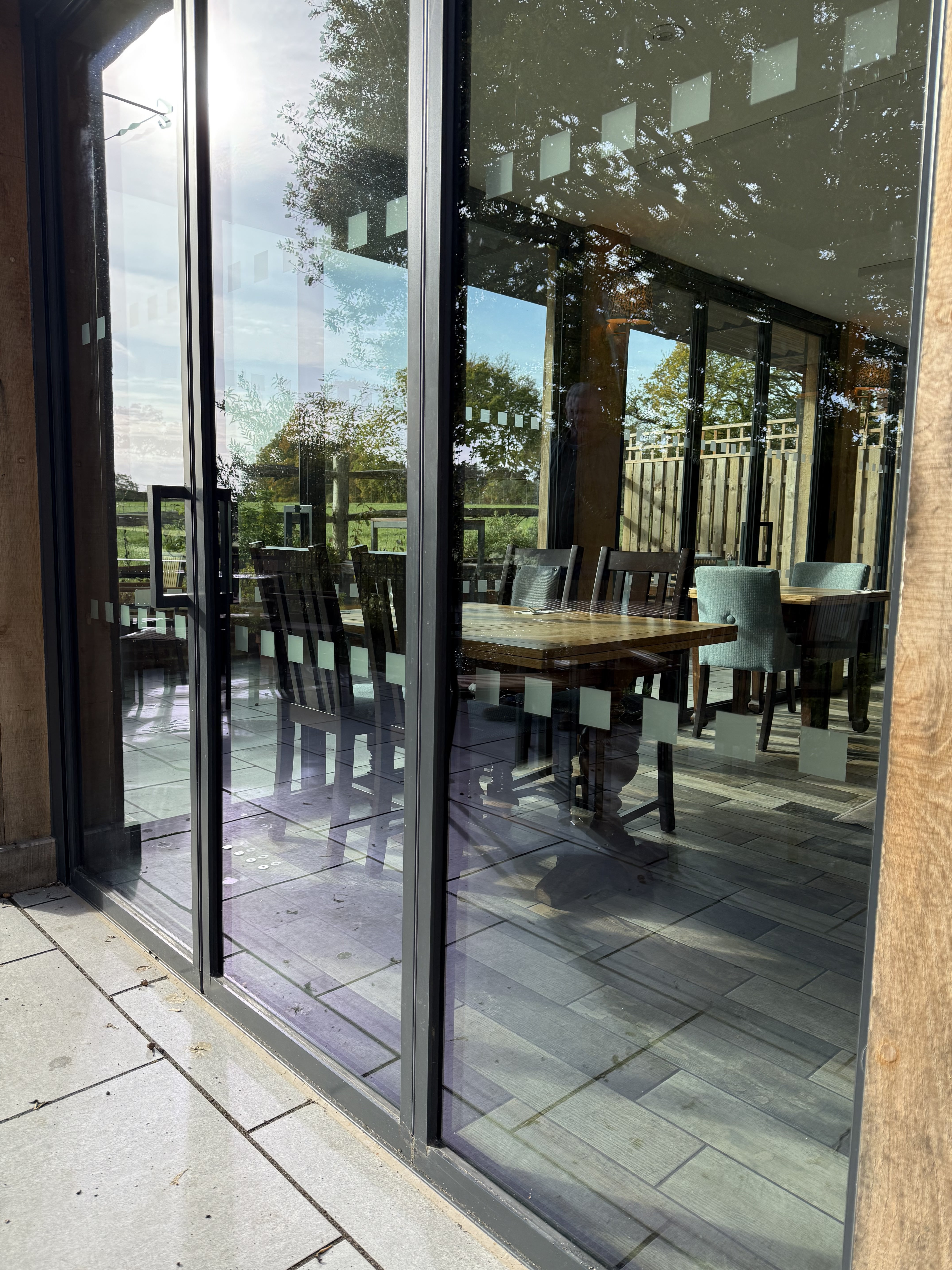 Large-scale sliding doors solve this by offering variable configurations. During warm days, entire elevations open to create almost outdoor dining. When weather deteriorates, doors close for full protection whilst maintaining crucial countryside views that drive bookings.